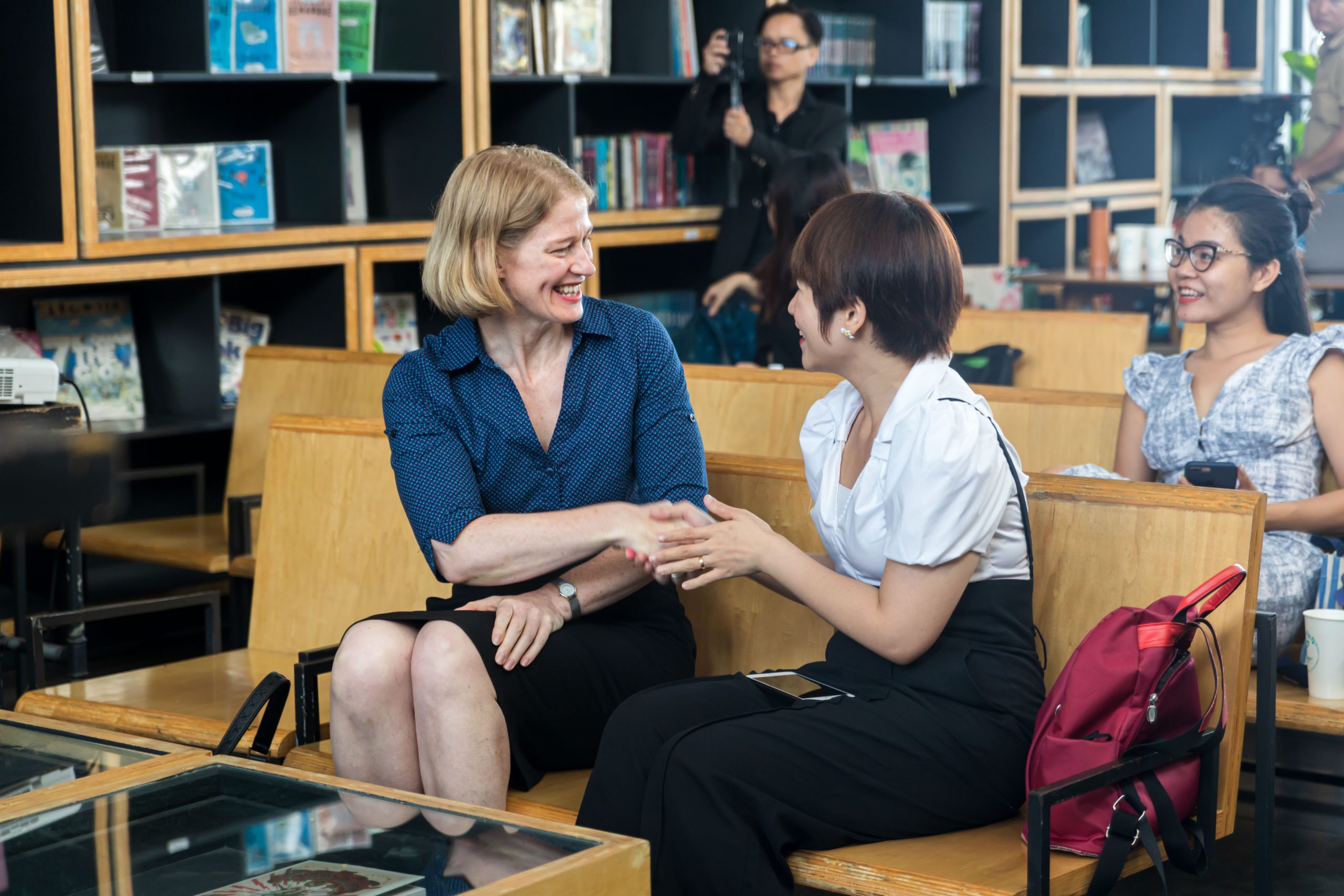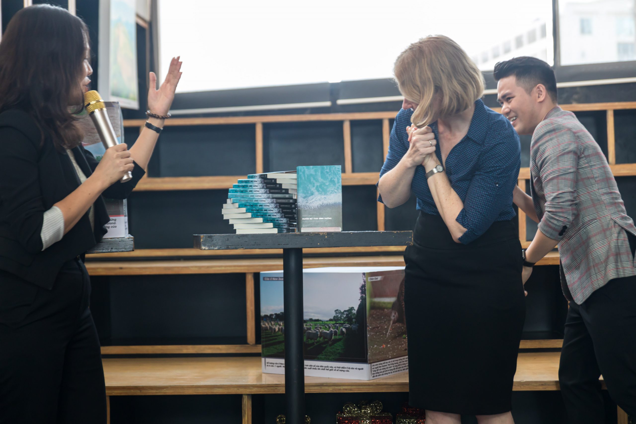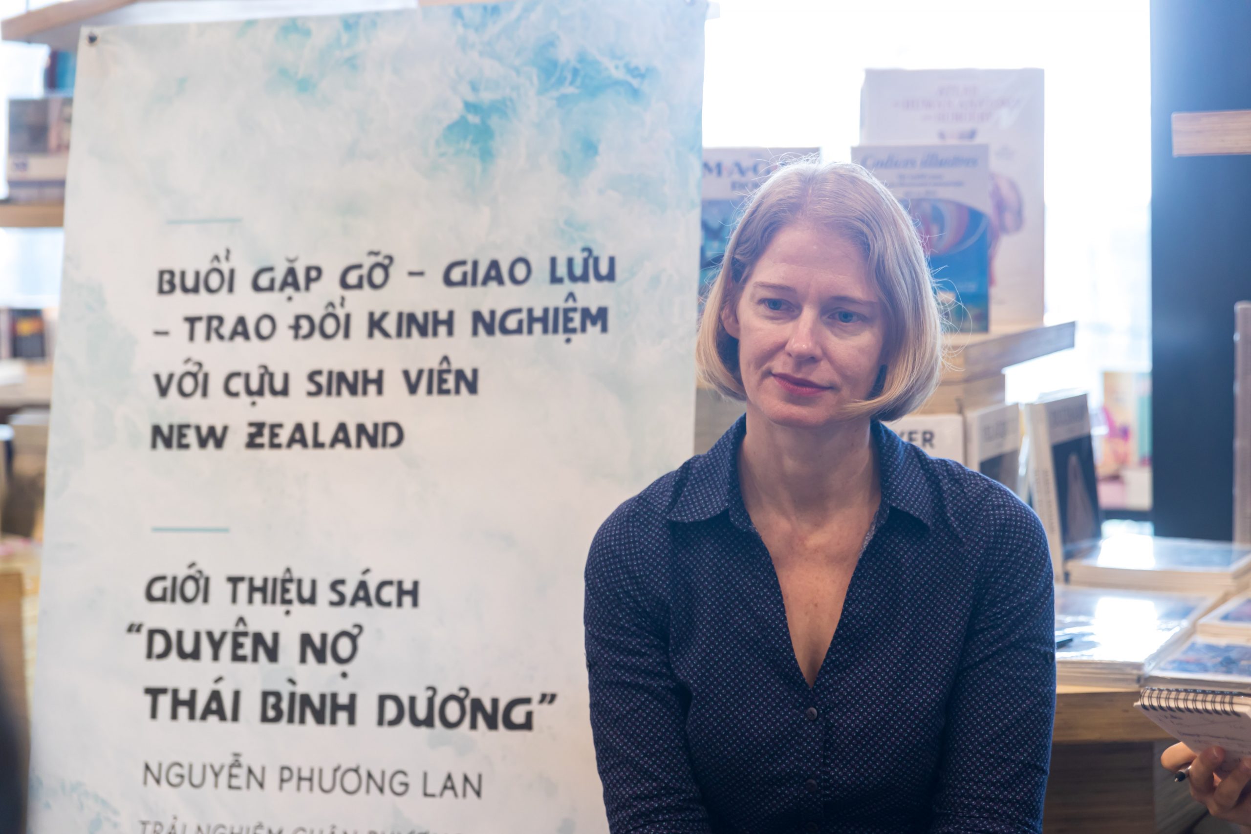 Thế nhưng, buổi gặp gỡ vẫn diễn ra suôn sẻ nhờ sự hiện diện của Bà Wendy Matthews – Đại sứ New Zealand tại Việt Nam và các khách mời đặc biệt: Tác giả Rosie Nguyễn – Người viết lời tựa cho cuốn sách, Anh Danny Võ và Chị Yến Thanh – Cựu Du Học Sinh, Chị Ngô Thanh Tâm – Đại diện Cơ quan Giáo dục New Zealand (ENZ),…cùng toàn thể quý anh/chị nhà báo và các bạn sinh viên quan tâm đến giáo dục New Zealand và cuốn sách Duyên nợ Thái Bình Dương.